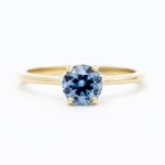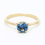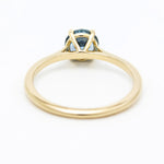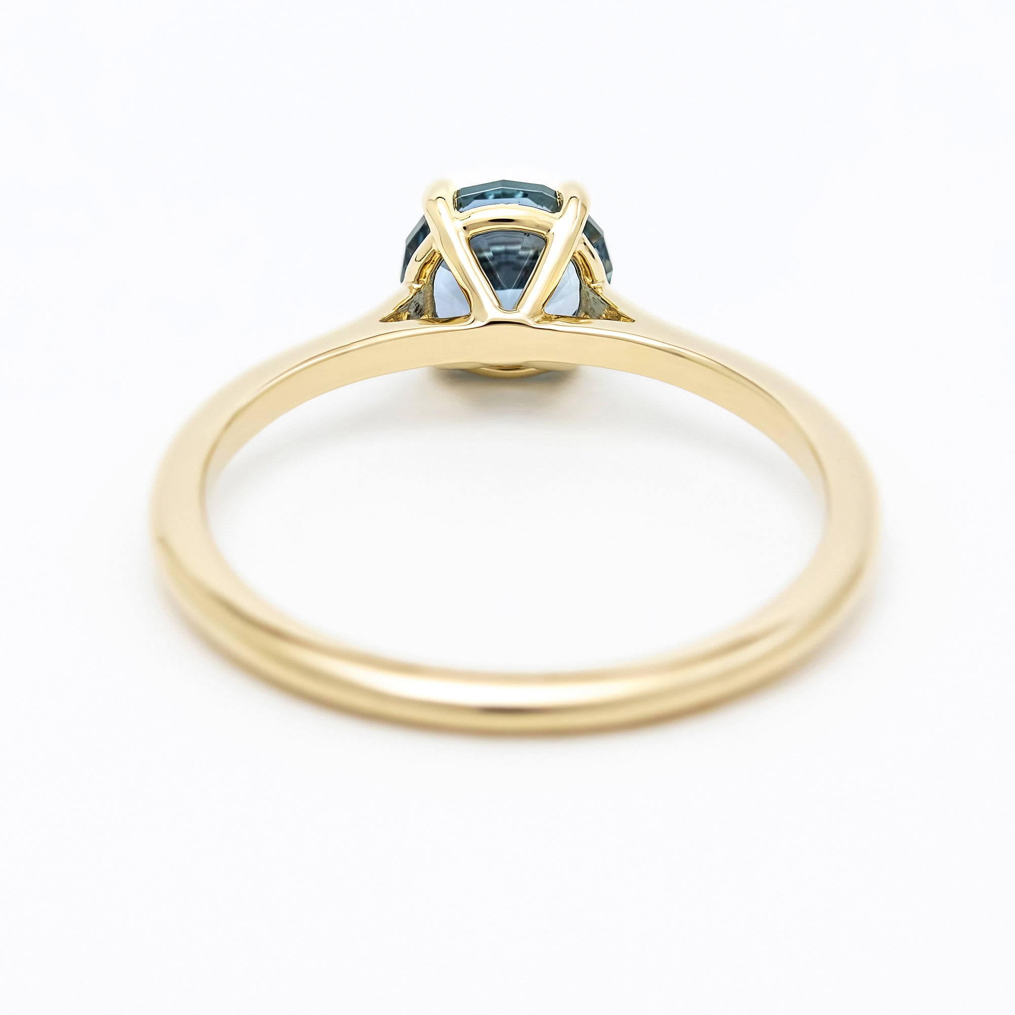 Something blue- the Calista ring is a show stopper for the bride who prefers something less traditional. This high end Montana sapphire engagement ring is absolutely stunning, with a delicate prong basket that lets light brighten the stone from below and cathedral shoulders that swoop up to show interest. The ring sparkles from every angle.
