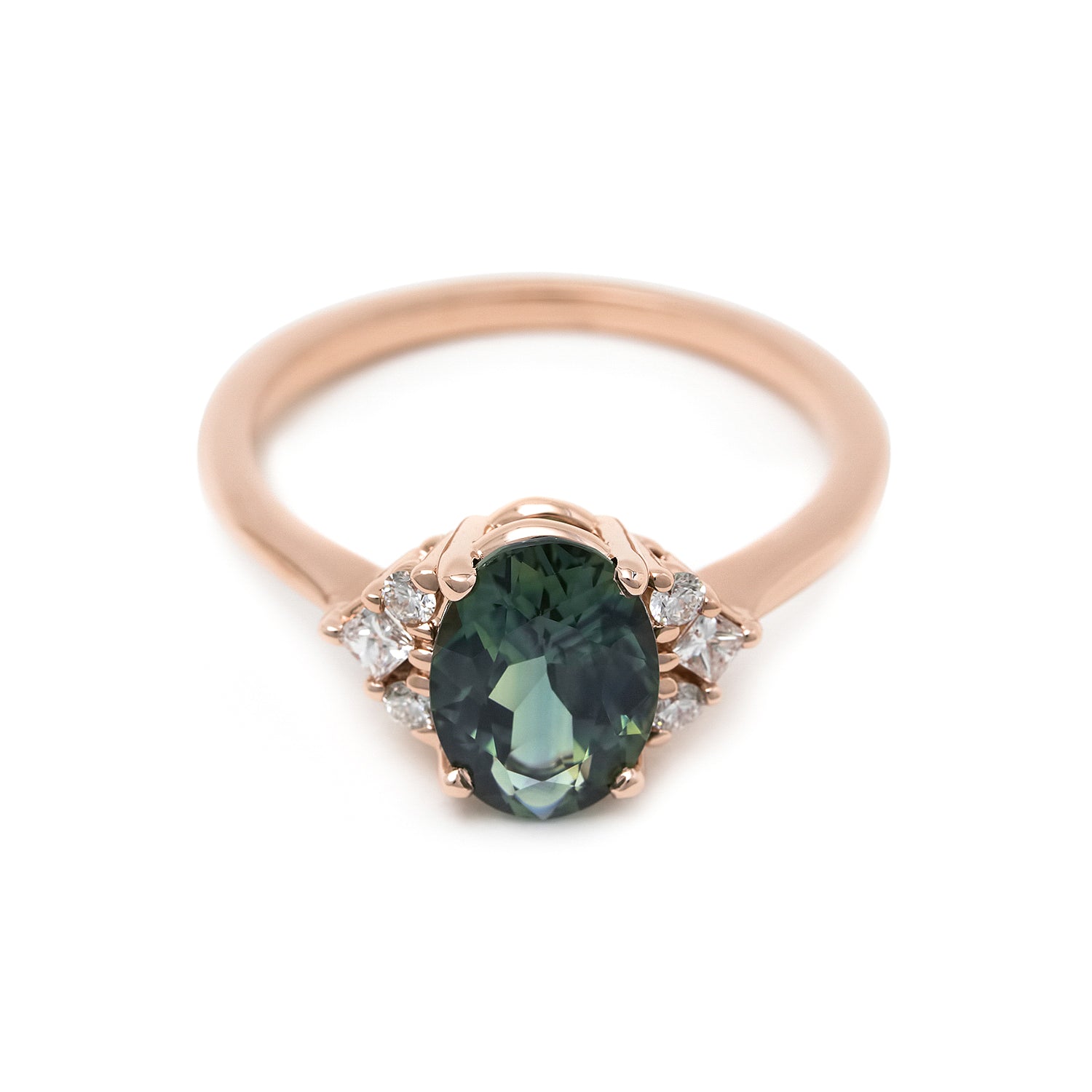 Twyla Ring | Blue Green Oval Sapphire 2.25 CT Engagement Ring