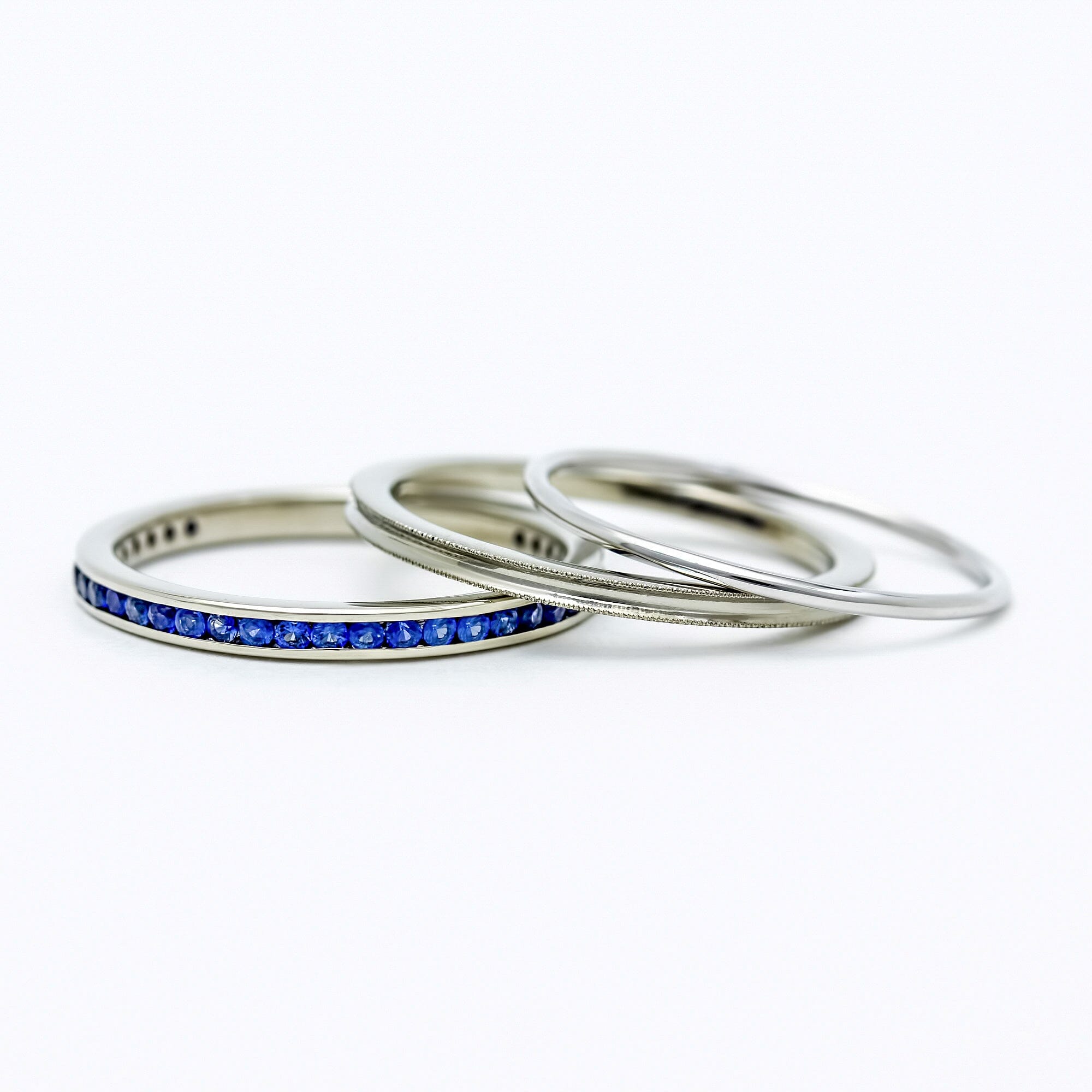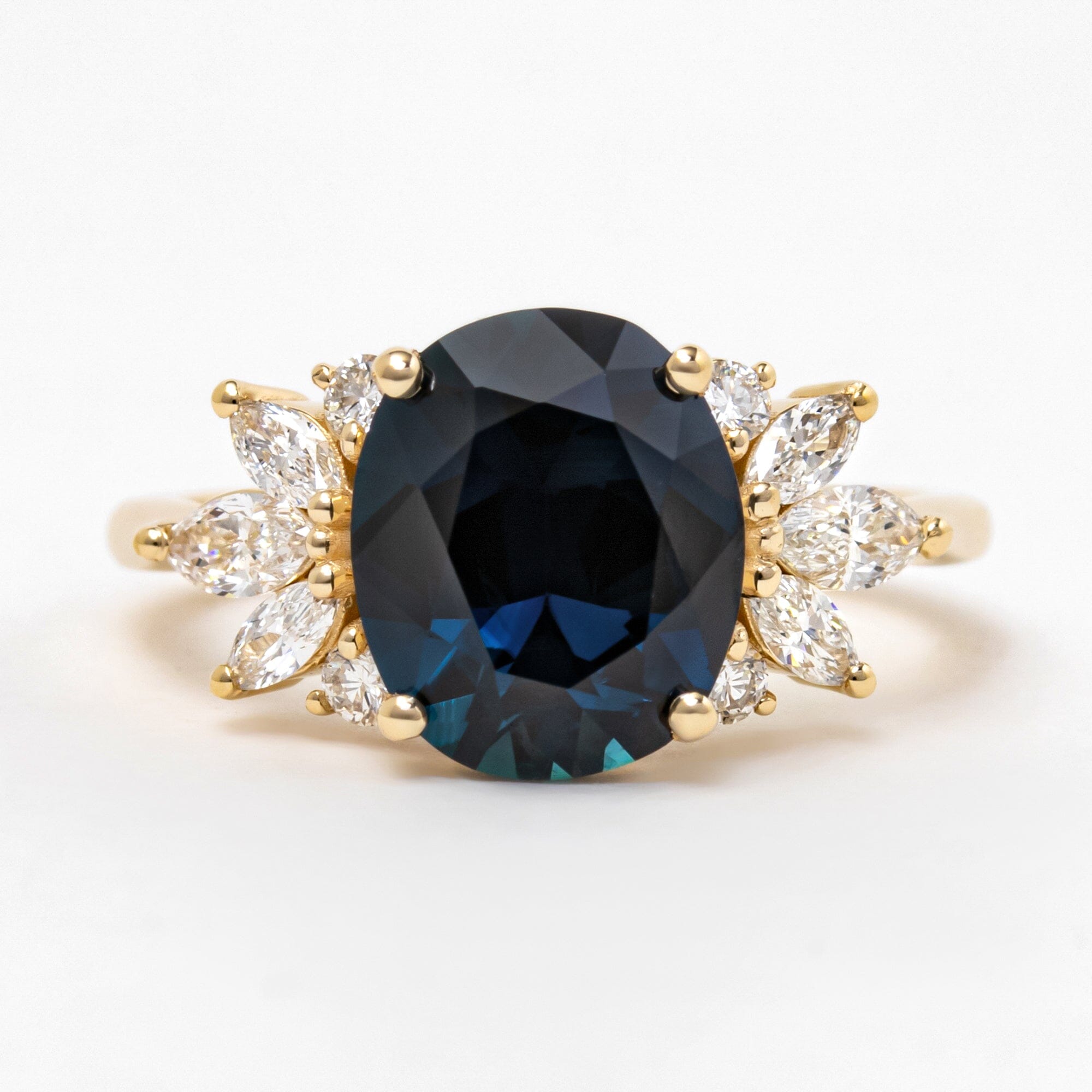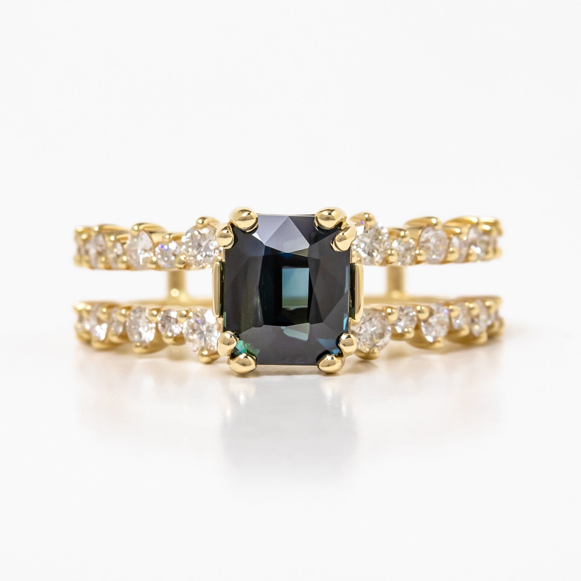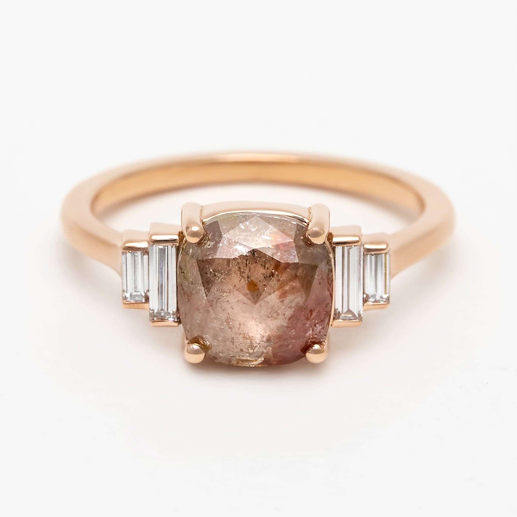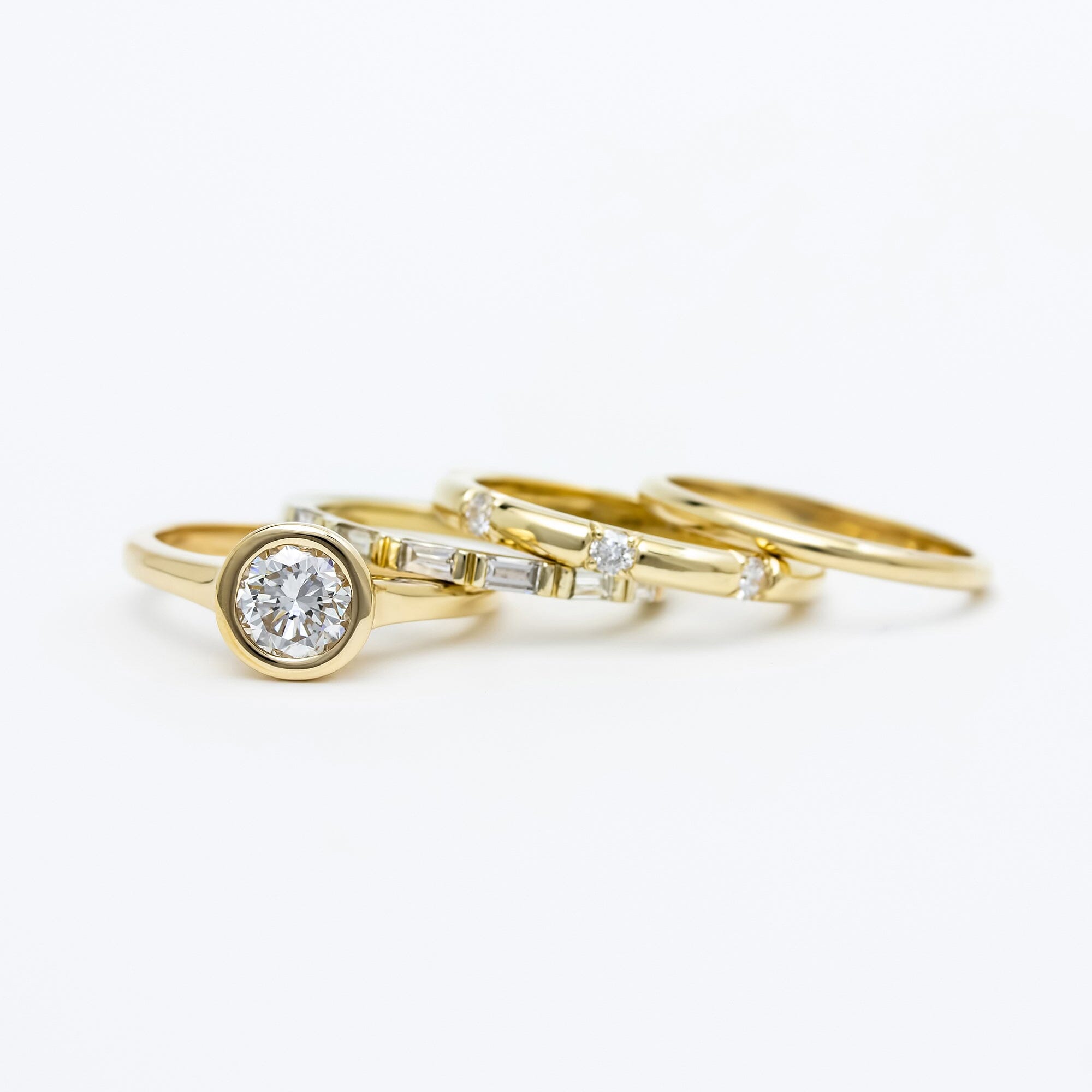 Welcome to our collection of past bespoke designs. While these rings were made for specific individuals and have sold, please feel free to browse the images for inspiration. We'd be happy to talk about designing something similar, whether it's the stone, arrangement, or overall feel that catches your eye.