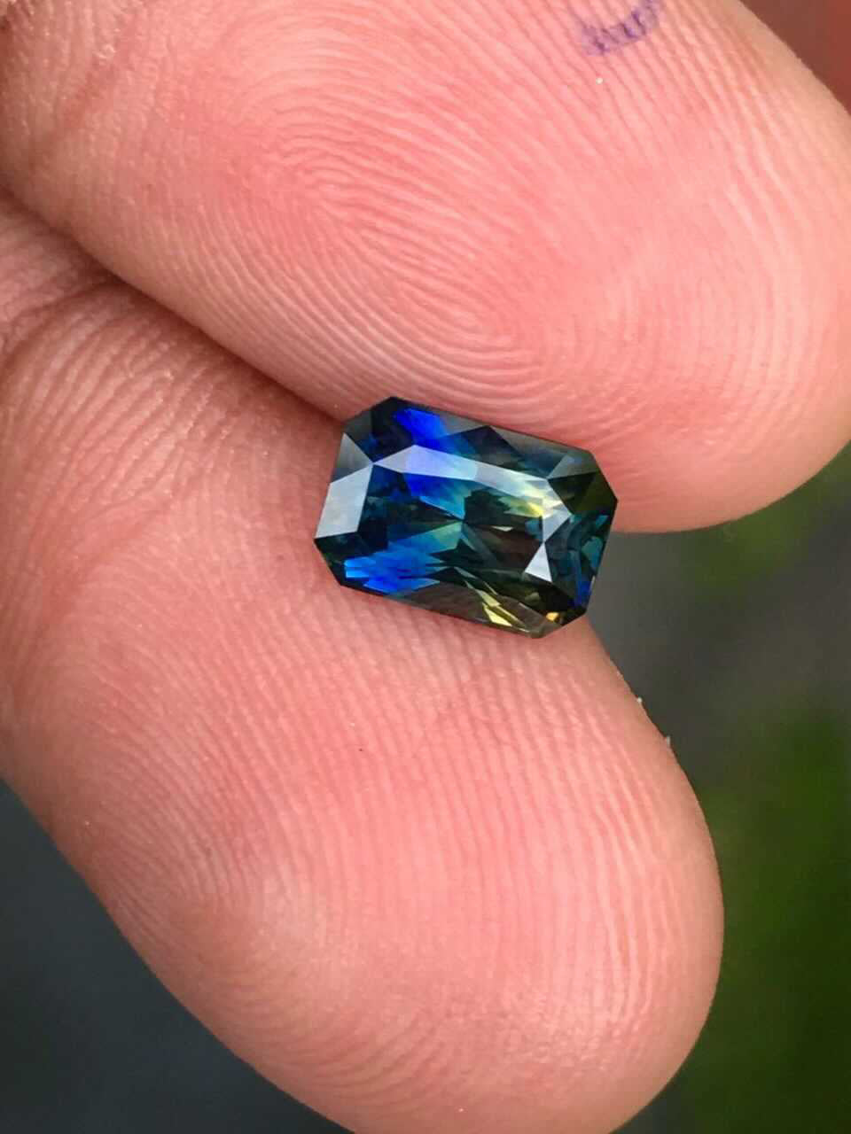 Extremely rare blue tri-color parti sapphire available for sale for custom project. Don't miss this chance to own this exceptional gem! Tri-color sapphires are significantly more rare than bi-color sapphires, and the incredible blue hues here mean it is even more unusual and valuable.